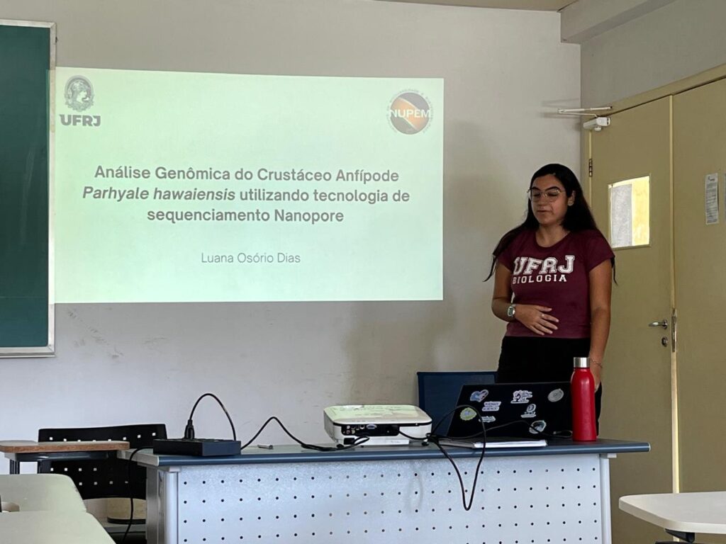 Luana Osório Dias is an undergraduate research intern in the field of genomics and molecular biotechnology. In her seminar, Luana presented a genomic analysis of the amphipod crustacean Parhyale hawaiensis, using Oxford Nanopore DNA sequencing technology.